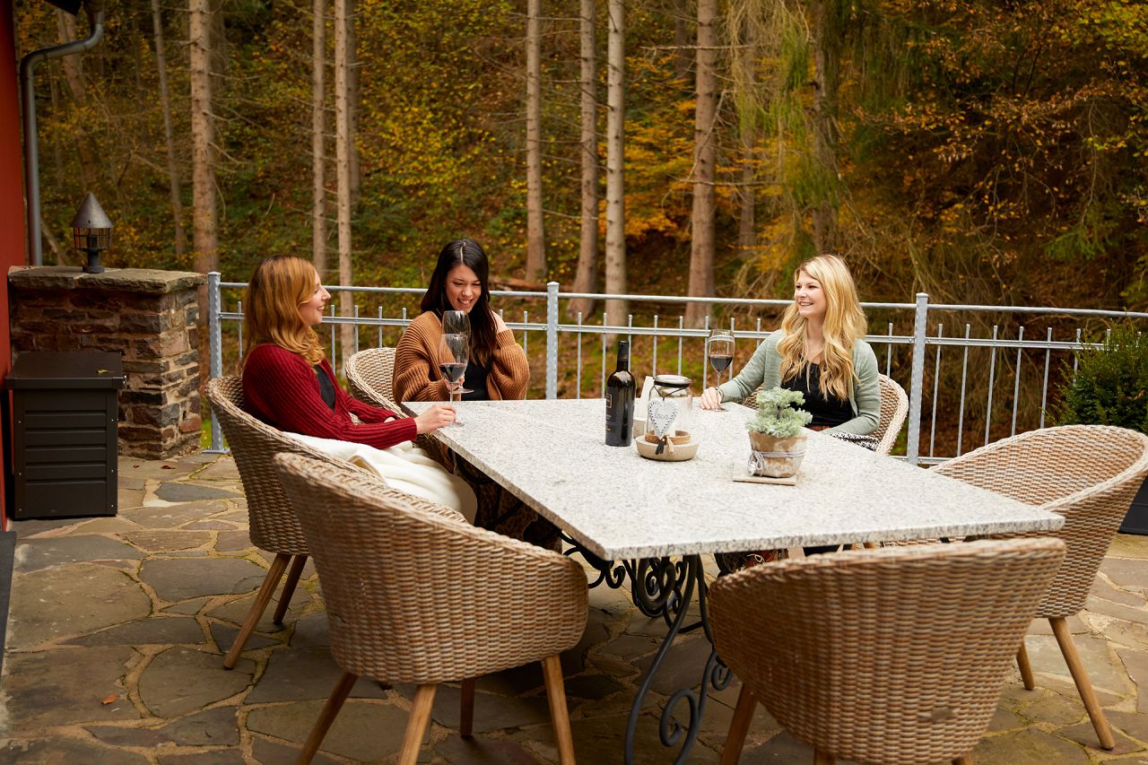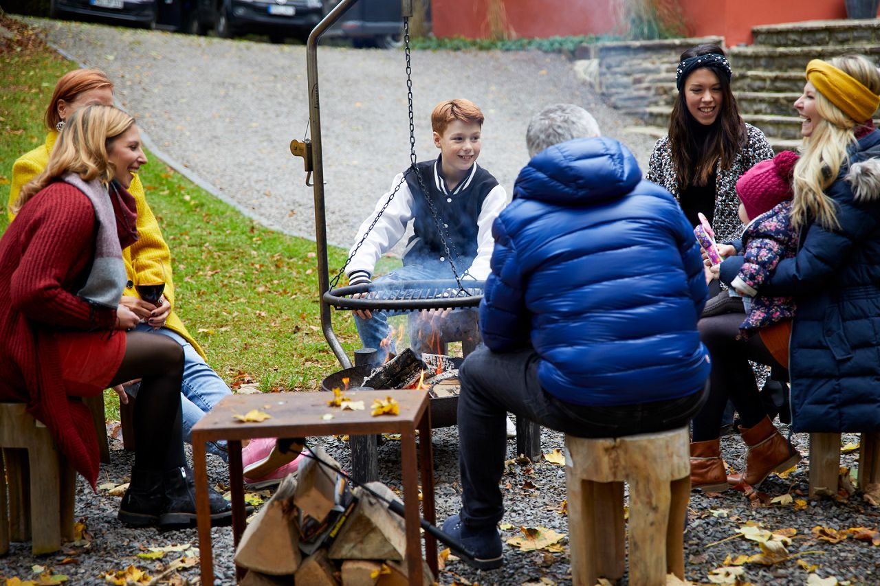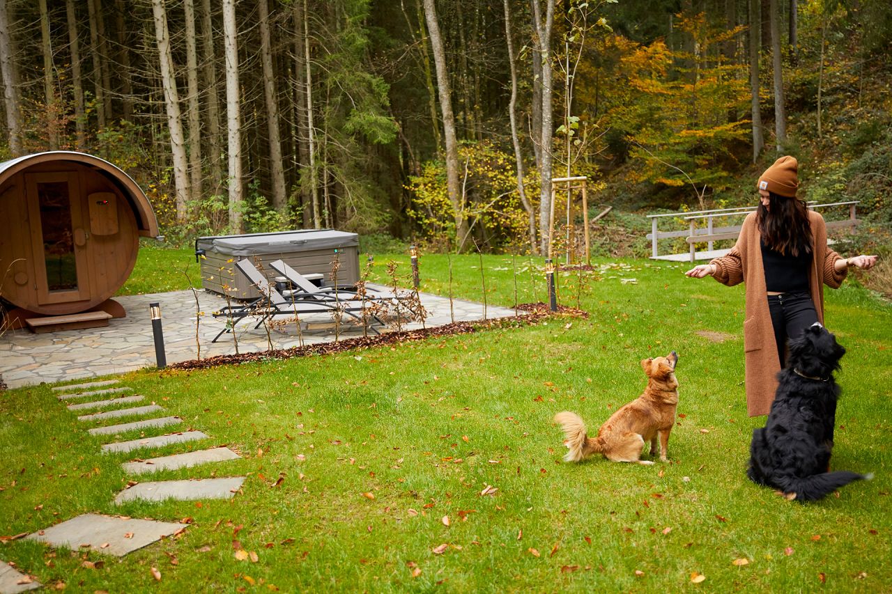 Von der Terrasse können Sie unter einer Markise dem kleinen Bachlauf lauschen. Im Außenbereich können Sie einen Whirlpool sowie die Fasssauna nutzen.