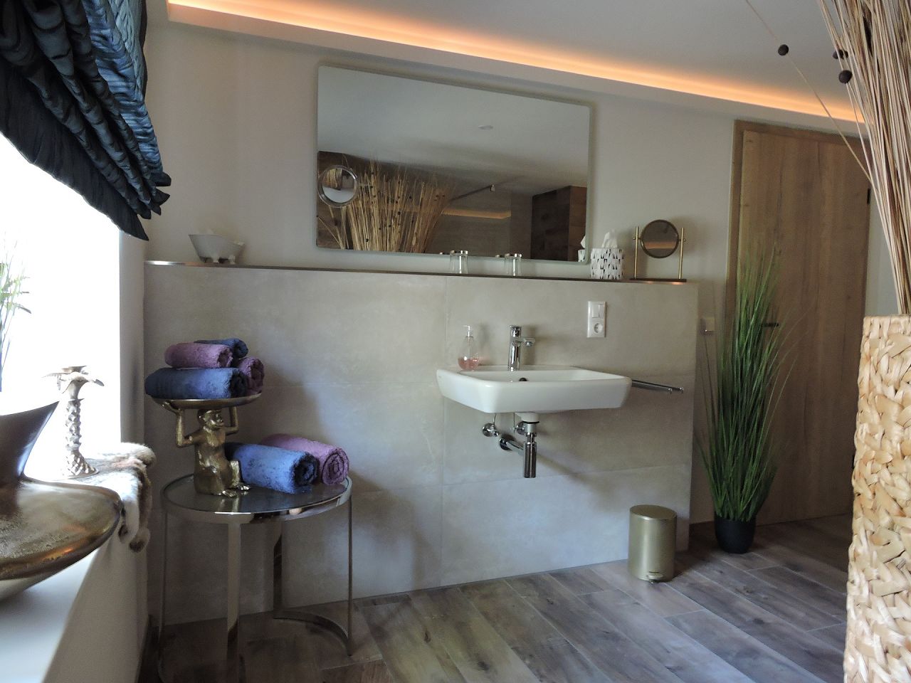 Die 2 Bäder sind modern ausgestattet und bieten Möglichkeit barrierefrei zu duschen. Von der Sonnenterrasse ist leise der Bach zu hören und vermittelt eine romantische Atmosphäre. Ein Jacuzzi und eine Fasssauna runden einen wundervollen Tag ab und tragen zur absoluten Entspannung bei. Radtouren oder Wanderungen sind direkt von der Mühle aus möglich.
